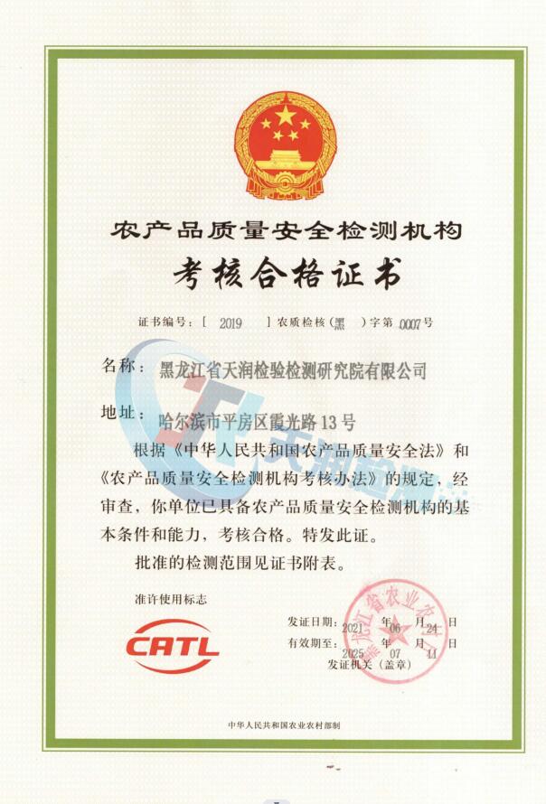 CATL 農產品證書