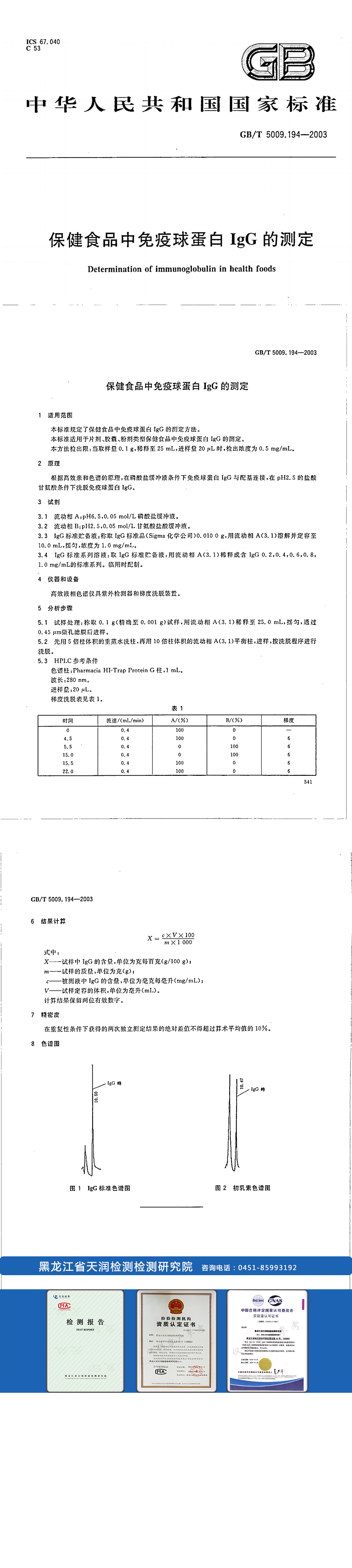 保健食品中免疫球蛋白IgG的測定