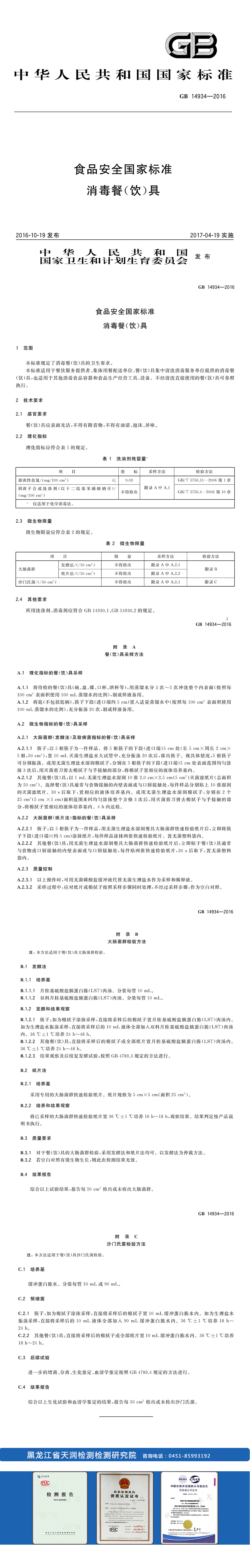 本標準規定了消毒餐(飲)具的衛生要求。本標準適用于餐飲服務提供者、集體用餐配送單位、餐(飲)具集中清洗消毒服務單位提供的消毒餐(飲)具,