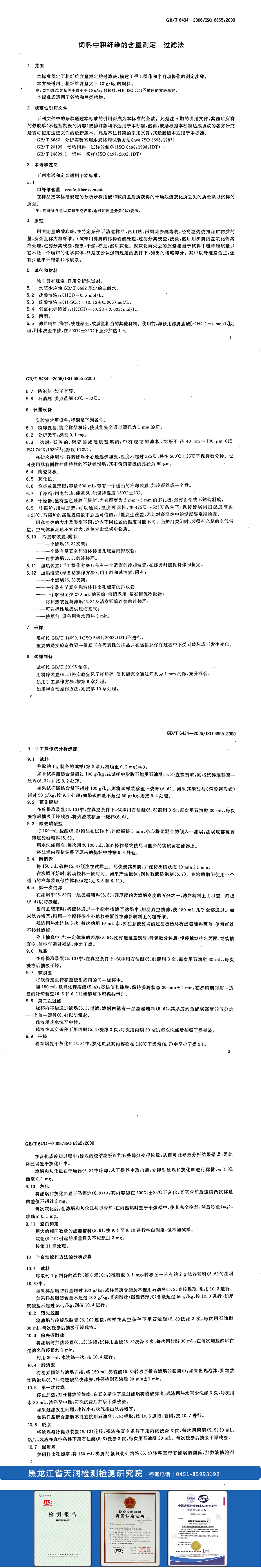 本標準規定了粗纖維含量測定的過濾法,描述了手工操作和半自動操作的測定步驟。本方法適用于粗纖維含量大于10g/kg的飼料。