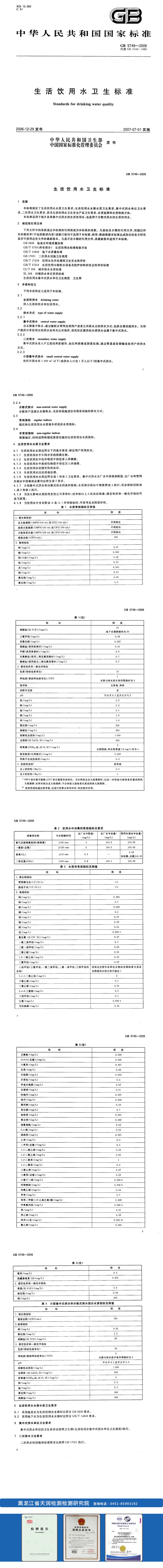 本標準規定了生活飲用水水質衛生要求、生活飲用水水源水質衛生要求、集中式供水單位衛生要求、二次供水衛生要求、涉及生活飲用水衛生安全產品衛生要求、